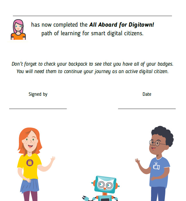 Children live out much of their childhood and teenage years online nowadays, often far from the watchful eyes of their parents, teachers and carers. While they are acting and interacting, learning and playing in the online world, they are also building the values, attitudes, skills and knowledge that are meant to carry them through life and that will influence their future well-being. But are they getting sufficient opportunities and support to hone their critical thinking skills, and develop the skills they will need to become resourceful citizens able to play an active role in society? Are they learning how to behave ethically and empathetically online and offline, and building a positive digital footprint? And are they developing a sufficient understanding of rights and responsibilities to be able to protect privacy and personal data, and to become responsible consumers? “All Aboard for DigiTown!”is a fun, entertaining learning journey for young digital citizens through 10 digital themes centred on ‘Being online’, ‘Well-being online’ and ‘Rights online’. These are based on the Council of Europe’s successful Digital Citizenship Education model. As children progress through the stories, exercises and individual and group activities in the book, they will learn about using digital technology wisely, behaving respectfully and responsibly, and cooperating meaningfully online and offline. They end their journey with a backpack of badges to remind them of what being a digital citizen really means. A final section provides solutions, and offers teachers and parents a detailed overview of the competences their children are developing in order to better guide them on their path towards digital citizenship. The book can be used both in class, at home and in distance learning. It is adapted to the learning needs of children in the final years of elementary school (age around 9-12 years).